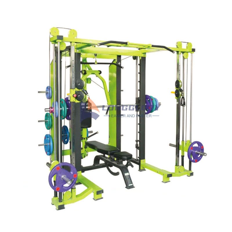 ملٹی فنکشن اسٹیشن پاور ریک سمتھ مشین ٹرینر کے مرکز میں ایک پلیٹ لوڈڈ پاور ریک ہے جو آپ کو آسانی سے اپنے وزن کو لوڈ اور اتارنے اور مختلف قسم کی مشقیں کرنے کی اجازت دیتا ہے۔ چاہے آپ اپنے اسکواٹس، ڈیڈ لفٹ، بینچ پریس، یا دیگر طاقت کی تربیتی مشقوں پر کام کرنا چاہتے ہیں، یہ پاور ریک آپ کے لیے بہترین ٹول ہے۔